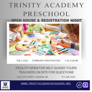 • *Trinity Academy has several classes that are Hudson School District 4K partnerships.  These classes are open to all but in order to receive the HSD4K tuition reduction a student must live in the Hudson School District.